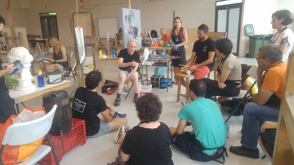 Segundo día, poco a poco, el grupo convive y es genial. Ayer pintamos y dibujamos a destajo, pero lo mejor: compartir. Hoy viene Antonio López, los que le conocen han puesto el listón muy alto.