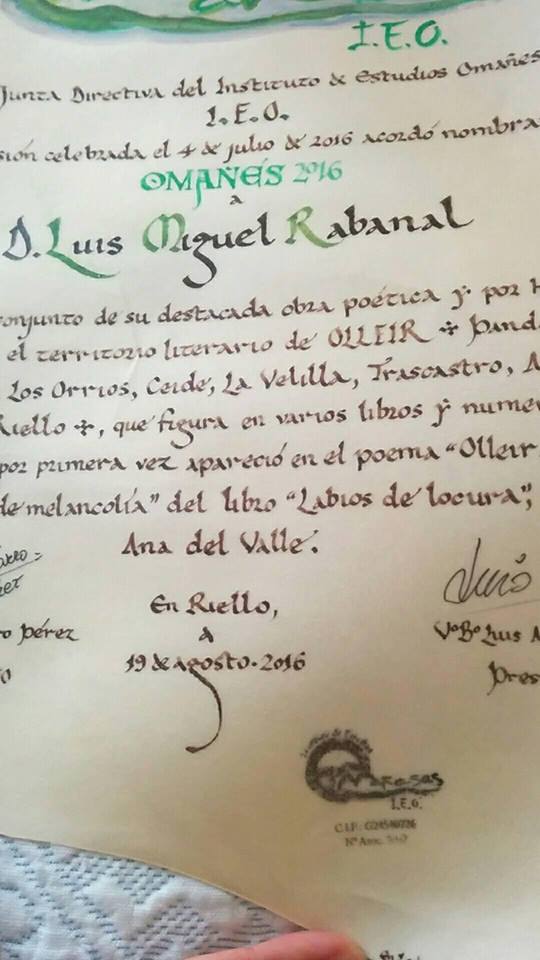 14022227_1057294511057160_3833817113008231356_n 21 de agosto de 2016 Return to: El poeta Luis Miguel Rabanal recibe el premio «Omañés del año»Máxima resolución (540 × 960) Image navigation "Omañés del Año" 2016. Foto: MJ Romero.