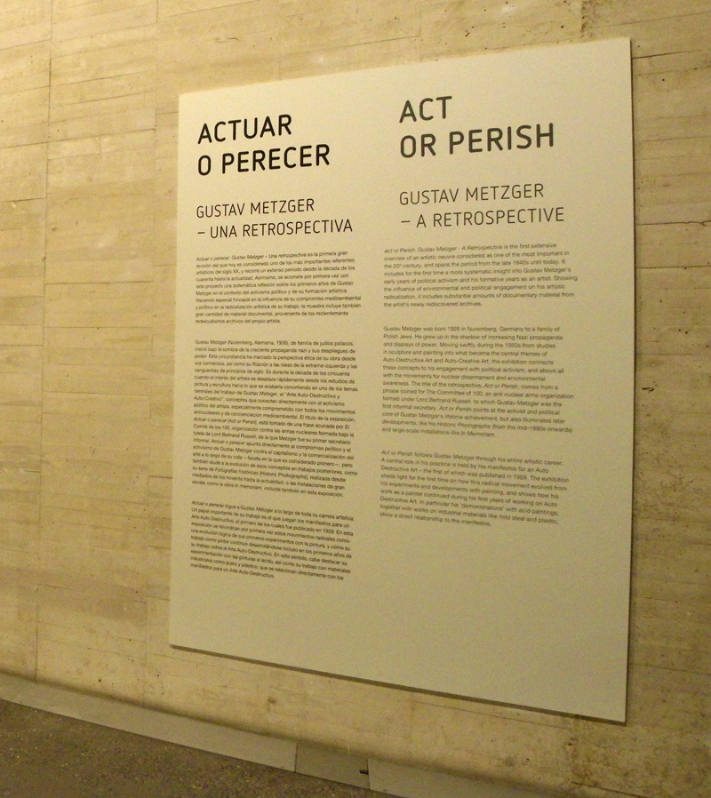 0-g-1 16 de septiembre de 2016 Return to: MUSAC/ Tres artistas para reflexionar sobre nuestro tiempo: Gustav Metzger, Darío Corbeira e Ilan ManouachMáxima resolución (800 × 898) Image navigation Previous Image Siguiente imagen "Actuar o perecer. Gustav Metzger – Una retrospectiva". Foto: E. Otero.