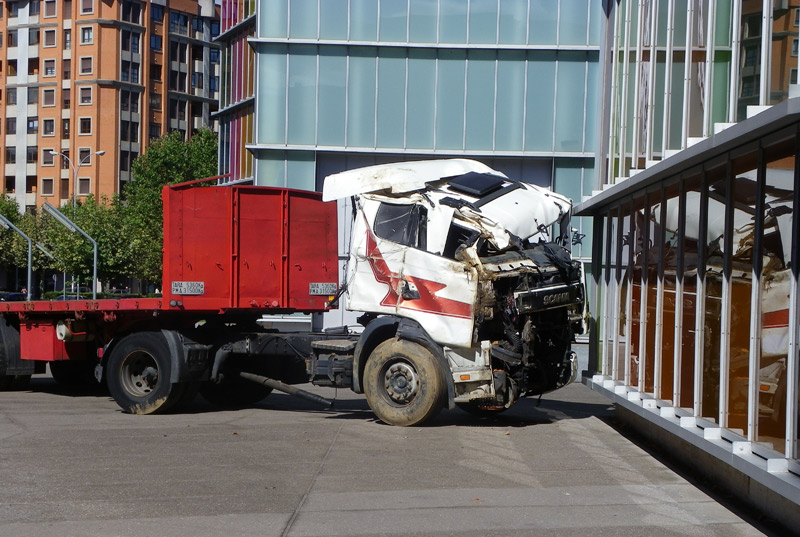 00-c-camion-2 16 de septiembre de 2016 Return to: MUSAC/ Tres artistas para reflexionar sobre nuestro tiempo: Gustav Metzger, Darío Corbeira e Ilan ManouachMáxima resolución (800 × 537) Image navigation Previous Image Siguiente imagen Darío Corbeira. La Clase Obrera nunca fue al paraíso (4), 2005-16. Instalación compuesta por camión siniestrado y texto.