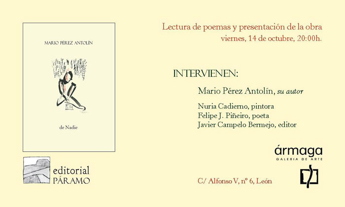 0-invitacion 12 de octubre de 2016 Return to: Nuria Cadierno cuelga en Ármaga sus ilustraciones para un libro de poemas de Mario Pérez AntolínMáxima resolución (700 × 420) Image navigation Previous Image Siguiente imagen