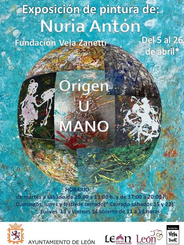 La pintora y escritora leonesa Nuria Antón muestra, hasta el 26 de abril, una selección de cuadros de su serie «Origen U-MANO» en la Fundación Vela Zanetti, junto a la Catedral de León.