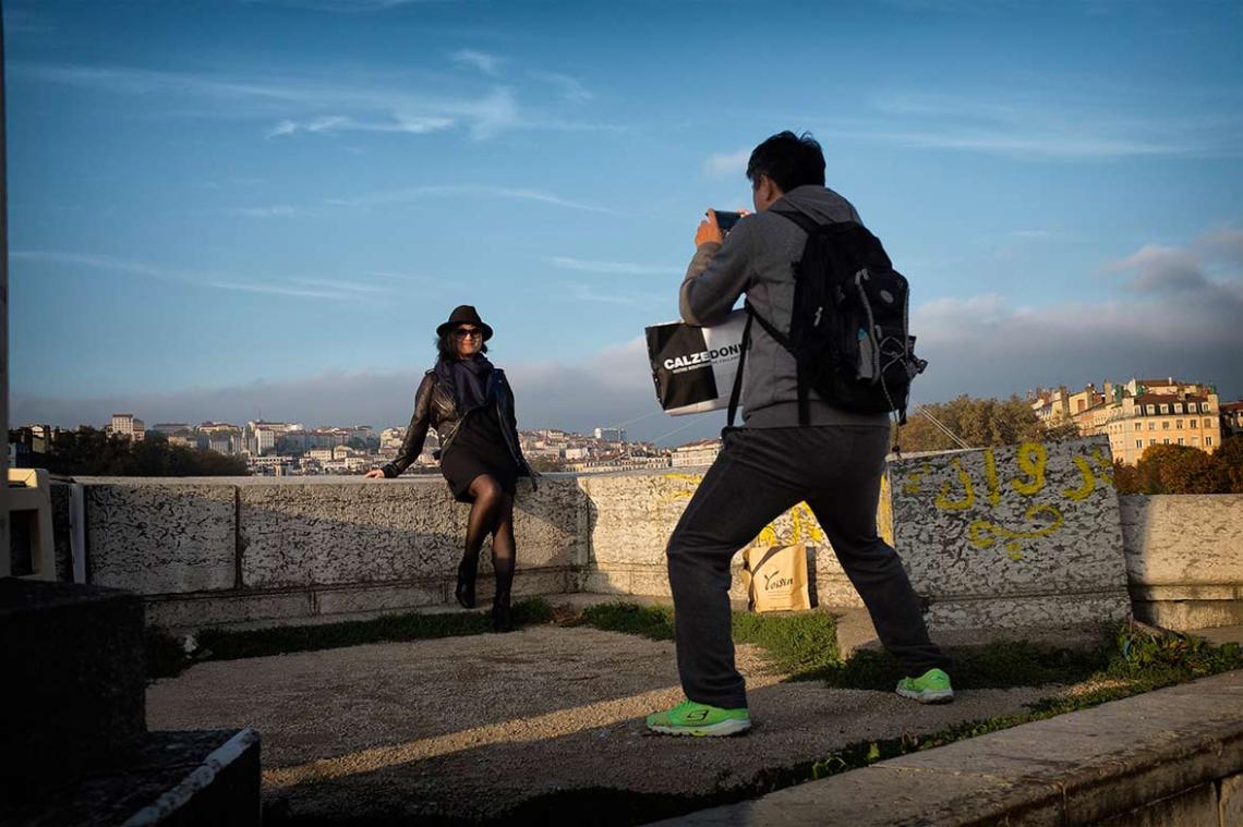 Una pareja de adinerados asiáticos, que llevan todo el día comprándose ajuares occidentales con dudoso gusto: él fascinado con la ropa deportiva y ella con el cuero negro, han subido a una de las colinas de Lyon para fotografiarse con la ciudad al fondo. Nada sospechoso, simples turistas. Ella parece posar para el fotógrafo que, a espaldas de su pareja, fotografía toda la escena. O eso parece, al ampliar la imagen, bajo las gafas negras, el sombrero negro y la chupa de cuero.