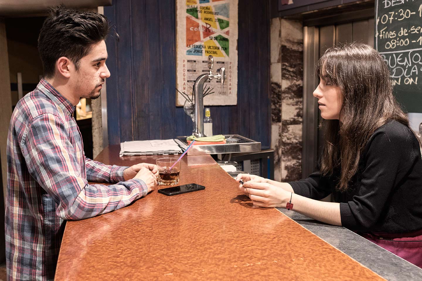 El móvil adormecido sobre la barra, parece una metáfora de la lánguida escena. ¿Fiesta de los maniquíes? No los toques, por favor. Debo ser yo el insensible, solo tengo ojos para el grifo de la caña.