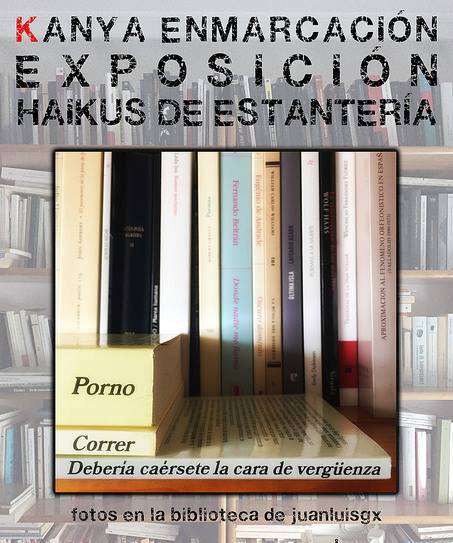 La exposición «Haikus de estantería», con fotografías del polifacético músico y activista cultural Juan Luis García (juanluisgx), en las que el autor juega a hacer haikus con títulos de libros, se inaugurará en Kanya Enmarcación (C/ Monasterio, 5) el jueves 11 de mayo de 2017, a las 20:30 horas, con el patrocinio de Bodegas Pardevalles, y podrá verse en horario comercial hasta finales de junio.