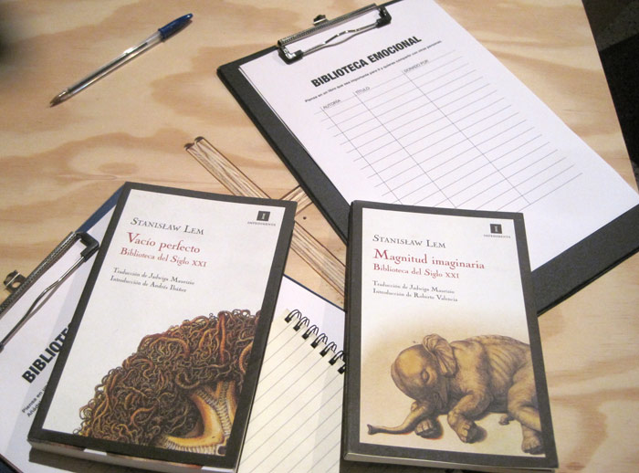 La elección del concepto «biblioteca» escogido por el comisario Eduardo García Nieto para establecer un dialogo o relectura de la Colección MUSAC no es algo casual. El libro ‘Vacío perfecto’ es el primer volumen de la tetralogía ‘Biblioteca del siglo XXI’, de Stanislaw Lem, figura consagrada de la ciencia ficción cuya obra maestra, ‘Solaris’, fue llevada al cine por Andréi Tarkovski. Publicado en 1971, el libro supuso una sorpresa para los lectores que esperaban encontrar un nuevo volumen dentro de los cánones del género, pero en realidad se trata de un experimento literario formado por dieciséis críticas a libros no escritos que, según avanzaba el subtitulo de la obra –‘Biblioteca del Siglo XXI’– debían comenzar a publicarse en el siglo siguiente.