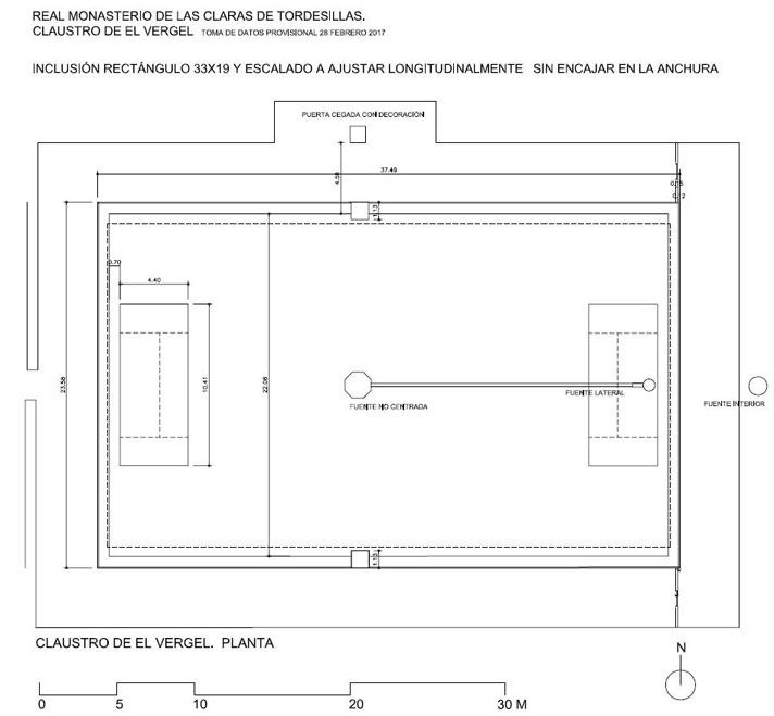 Nos preguntamos en cuánto coincidiría este vergel rectangular original con los de los periodos almohades de la Casa de Contratación en Sevilla y el Patio de las Damas de los Alcázares sevillanos.