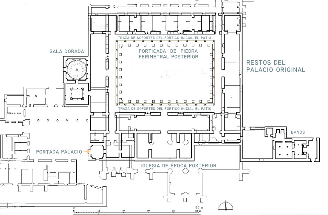 Para continuar con los jardines de D. Pedro I de Castilla y su filiación con los coetáneos de Sevilla, Granada y Astudillo en Palencia, retomamos la planta de A. Almagro, realizada para la Escuela de Estudios Árabes en 2002.