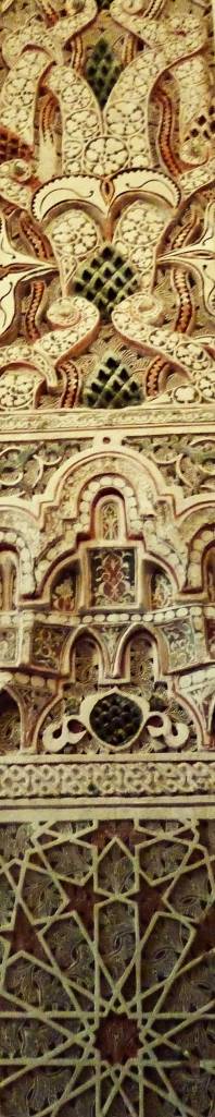 Arte excelso y magnífico, con materiales sencillos manejados con sublime sensibilidad y pericia. El amigo de Don Pedro I, Yusuf I en Granada estaría construyendo salas análogas; curiosamente ambos vistiendo a la forma “mora”, muy cómoda por cierto según los que la han probado.