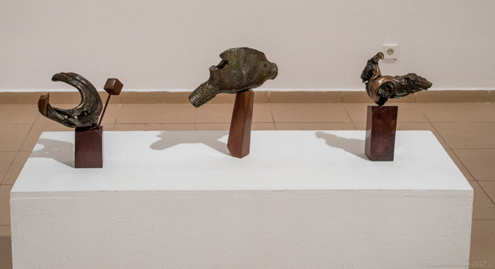La dedicación plena a lo que se podría denominar como la concreta proyección y formalización de sus ideas plásticas se inicia en Genicera en 1987. Pero siempre con el compromiso de lucha por la zona rural y la ecología; así lo indica el periodista y vecino de la zona Fulgencio Fernández: “Por aquella época se sumó a la lucha contra el pantano de Riaño –el ecologismo-, todavía no se ha olvidado el título de la obra que sustanció aquella dura batalla: De vacas a peces por estupideces”. Una referencia del hecho realizada en bronce en pequeño formato que representa un monstruo medio pez medio rama surgido de la torpeza del hombre y sus actuaciones especulativas de terribles consecuencias en el futuro. Magnífica obra que está presente en la muestra.