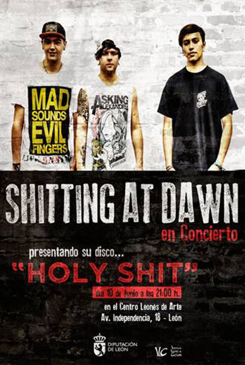 “Shitting at Dawn” es una nueva banda leonesa de punk-rock, compuesta por músicos muy jóvenes, que en esta ocasión presentarán los temas de su primer CD, «Holy Shit», realizado con mucha ilusión y con canciones propias.