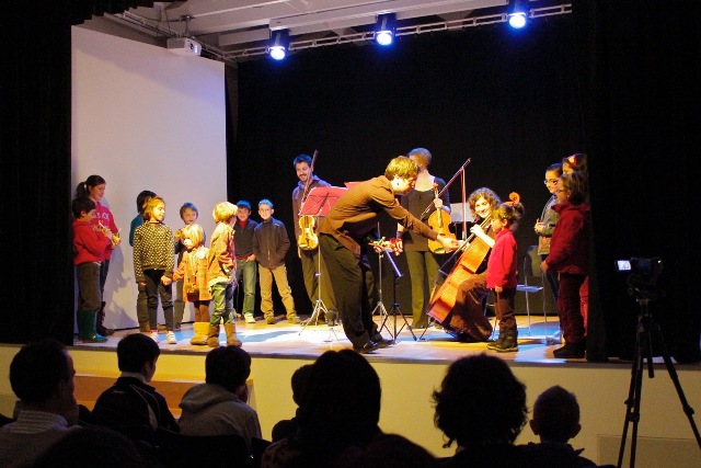 Concierto didactico del Cuarteto Sforzato_ Fundacion Cerezales 2013 10 de julio de 2017 Return to: Cerezales llevará un músico en residencia al Colegio Rural Agrupado del PormaMáxima resolución (640 × 427) Image navigation Previous Image Siguiente imagen Concierto didactico del Cuarteto Sforzato. Fundacion Cerezales, 2013.