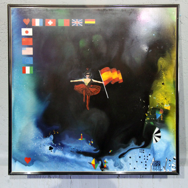 El profesor Valdés se asoma, por ejemplo, al cuadro titulado «La española» (1989) y ve «un negro abismo que no parece tan espeluznante como para dejar en el umbral toda esperanza; está rodeado por un mar azul placentero y verdes campos. Del abismo emerge una figura femenina que, con los ojos cubiertos con un antifaz, ondea una bandera de España. Una bandera puede ser festiva, dos banderas confrontadas son un fracaso global y una tragedia, y muchas banderas pueden reflejar una ineficiente sociedad de naciones para una paz inalcanzable».