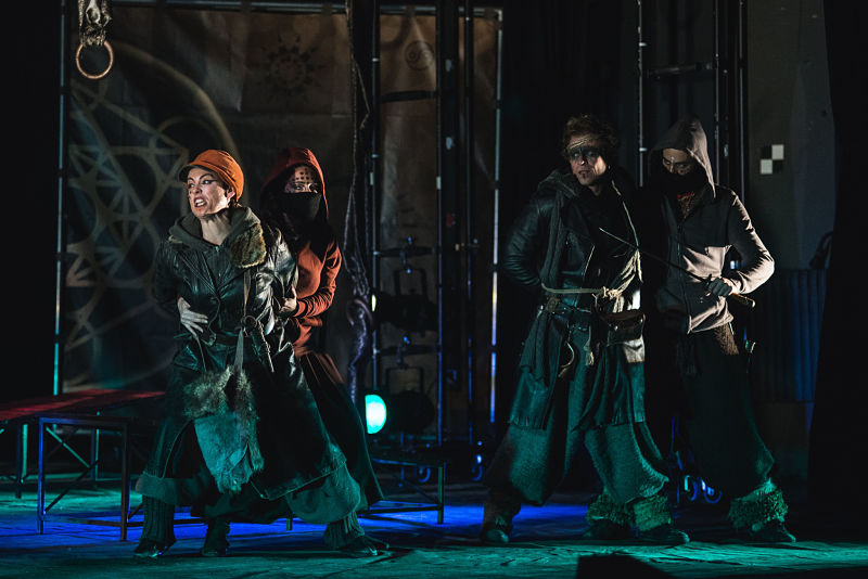 Reconozco que en ese momento dudé de la representación por lo atrevido de la puesta en escena, pero según fue avanzando la obra y se presentaron los personajes, con esa estética tan trabajada, interesante vestuario, maquillaje perfecto y uso de las sudaderas con capucha como un elemento de cambio de personaje, me dejaron con la boca abierta.