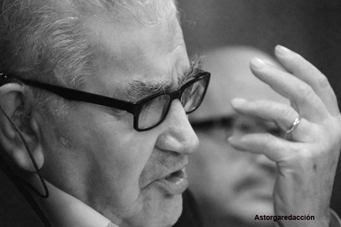 Antonio Gamoneda impartió en Astorga la conferencia inaugural para la V Escuela de Verano de Traducción de la ULE, en colaboración con la Red Europea de Traductores de Castrillo de los Polvazares, este lunes 24 de julio de 2017. El motivo del encuentro de Gamoneda con sus traductores europeos es el 40 aniversario de la publicación del libro que cambió radicalmente su modo de poetizar, ‘Descripción de la mentira’. El diario digital Astorga Redacción no dejó escapar la ocasión de realizarle una entrevista, aunque esta haya quedado «de alguna manera truncada, pues el señor Gamoneda palpó la grabadora a la mitad de la conversación» y sin que el entrevistador se diera cuenta la apagó… «cuando le preguntaba por la memoria histórica…»
