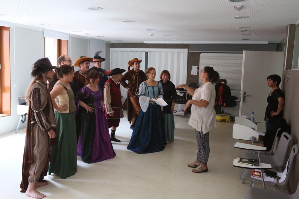 El curso oferta el acercamiento a lo actoral, aprendiendo a vestirse de aquella guisa, decir el verso, cantar, danzar, blandir la espada y por supuesto divertirse, pues el término “festival” etimológicamente procede del latín festum, es decir fiesta, y como tal, es de obligado cumplimiento.