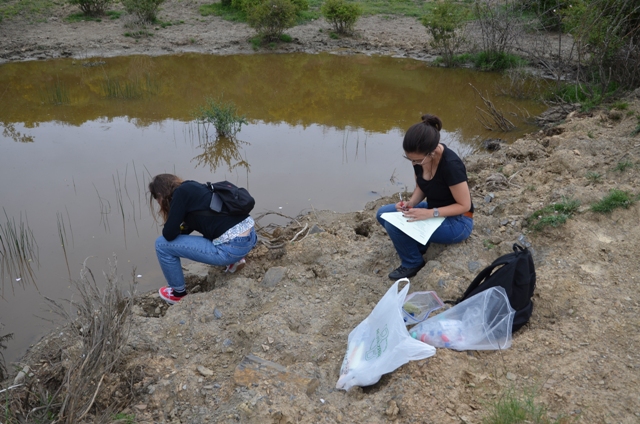 11_Riaño 4 de agosto de 2017 Return to: TIERRA DE DIATOMEAS: “Las diatomeas nos han hablado de lo que somos a partir de aquello que hemos heredado y de lo que podemos ser”Máxima resolución (640 × 424) Image navigation Previous Image Siguiente imagen Tomando muestras en Ríaño. Fotografía: Cortesía de las artistas.