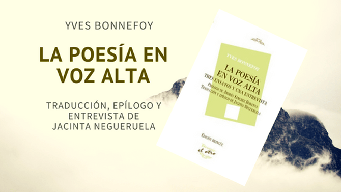 El poeta y profesor astorgano Eloy Rubio Carro entrevista a Jacinta Negueruela por su conocimiento profundo de la obra de Ives Bonnefoy (1923-2016), al que dedicó su tesis doctoral y del que acaba de publicarse un libro traducido por ella, ‘La poesía en voz alta’, en el que se incluyen tres ensayos (conferencias) del pensador y escritor francés —«Comprender la poesía y preservar el lenguaje», «La poesía en voz alta» y «Fin del mandato, necesidad de una alianza»—, así como una larga y honda entrevista que ella mantuvo con él en 1997.