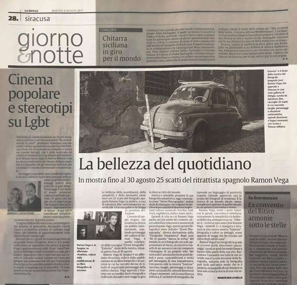 El pasado 8 de agosto se publicó una reseña en el diario La Sicilia anunciando la exposición, firmada por Mariolina Lo Bello, en la que se alude a «la belleza de la cotidianidad, de la simplicidad y de la normalidad» que exhalan estas 25 instantáneas de José Ramón Vega que se mostrarán a partir del 11 de agosto en la Fototeca Siracusana.