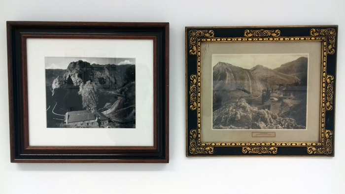Por otro lado se hace una referencia explícita a la situación de la zona a principios de siglo XX con dos fotografías de Winocio Testera Pérez (León, 1873-1959), fotógrafo documentalista destacado que se formó con Germán Gracia. La primera imagen, casi irreconocible hoy, corresponde a la zona de Santa Lucia y la segunda a la conocida zona denominada como la Gotera, un sinuoso espacio donde se ubicaba la fábrica de luz. Dos imágenes que nos muestran los significativos cambios producidos en la zona después de cien años.