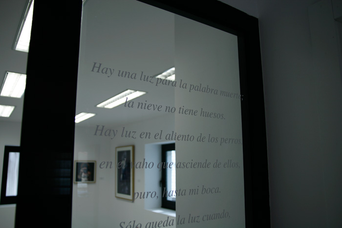 En la primera sala, de mínimas dimensiones, nos encontramos un texto explicativo, breve y genérico, del contenido de la muestra y tres significativos retratos fotográficos en blanco y negro, una cita y al mismo tiempo un sencillo homenaje a la fotografía documental, elemento fundamental de nuestra memoria gráfica. Retratos que hacen una referencia escueta y poco representativa por el número de personajes recogidos, pero muy sincera, a algunos de los actores culturales que residen actualmente en la zona, situados como referencia a la potencialidad real que tiene y puede alcanzar la cultura como motor de transformación y cambio de una realidad social y económica.