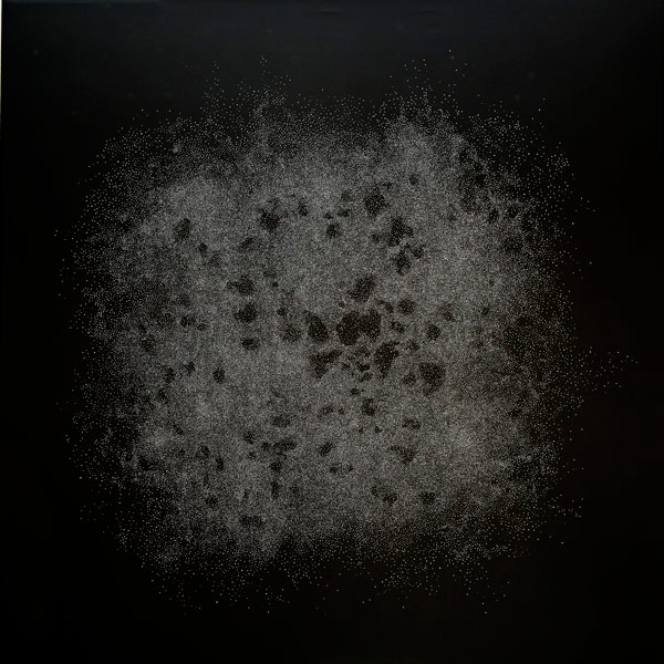 Justo al lado de estas fotografías, se sitúa una pieza de Luis Melón perteneciente a la serie Enumeraciones, obra que participó en la muestra que le dedicó el MUSAC a este destacado artista leonés en el año 2015. Una composición que parte del análisis y estudio estadístico, para plantear un posicionamiento muy crítico y directo, en relación a la situación de las fosas comunes de la Guerra Civil. Una pieza de gran impacto visual y conceptual, que nos aproxima a un sistema de trabajo procesual de una compleja y delicada elaboración.