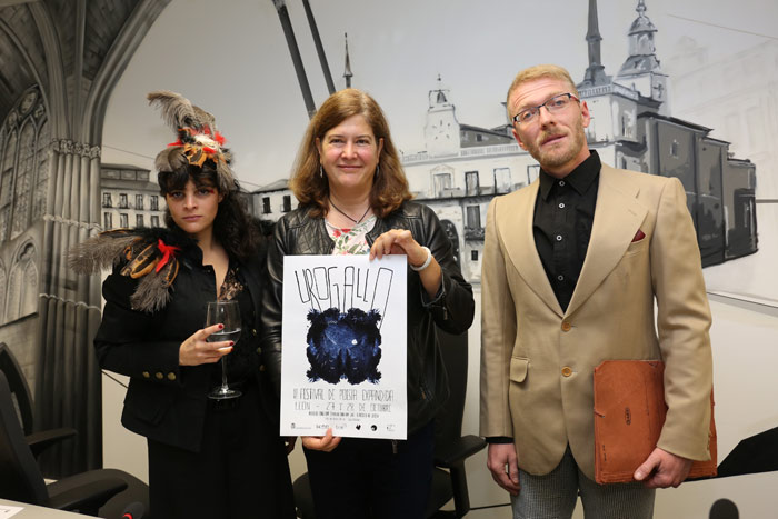 2-2017-10-25-presentación-festival-poesía-expandida-urogallo 25 de octubre de 2017 Return to: UROGALLO / El II Festival de Poesía Expandida ofrecerá en León seis actuaciones entre el 27 y el 28 de octubreMáxima resolución (700 × 467) Image navigation Previous Image La concejala de Cultura, Margarita Torres, y los maestros de ceremonias de UROGALLO, Andrea Soto y Manuel AO. Foto: César.