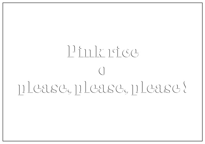 Pink rice o please, please, please! se presenta como un acaecimiento programado, una acción inmersiva en forma de rodaje clandestino, una instalación permanente con base en una performance efímera. El artista invita al espectador a bajar a un sótano de graves y destellos, donde se materializan algunos de los personajes habituales del universo distópico de Fandiño. El referente más cercano de la acción probablemente sea Cinema Club, el vídeo que realizó para la última edición de TESLA (festival de música experimental que se celebra en febrero en León), y así nos volvemos a encontrar con las siamesas Lisa y Louise o con una versión actualizada del inquietante Lord Weber. También cuenta con la participación en directo del imprescindible Genzo P., responsable de la banda sonora de la intervención. Un retablo físico y emocional que funde el trabajo más íntimo de Fandiño –su poesía autocensurada de corte dadaísta– con la instalación pictórica y la grabación videográfica en directo.