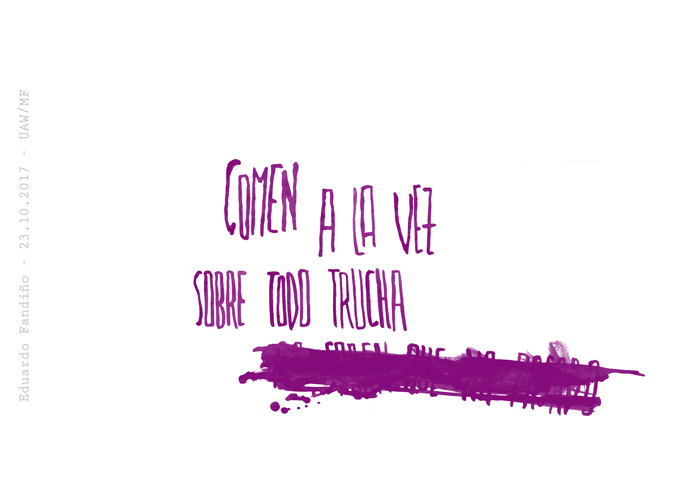 ** Horarios de UAW/MF para la semana del 23 al 29 de octubre: el artista Eduardo Fandiño estará en la sala a partir de las cinco de la tarde durante toda la semana.