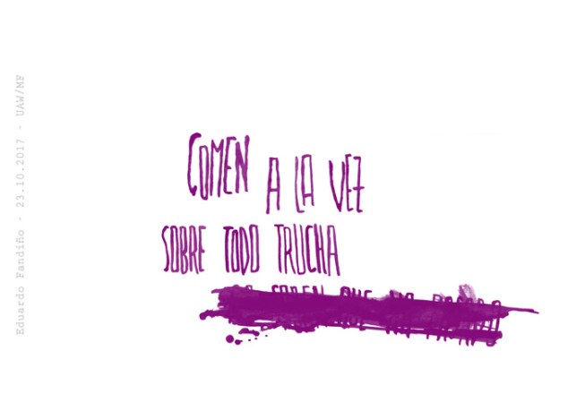 Este lunes 23 de octubre, por la noche, Eduardo Fandiño presenta Pink rice o please, please, please!, la primera gran intervención plástica acometida en la sala autogestionada UAW/MF. Realizada bajo el sello de Producciones Infames, esta propuesta sirve para dar el pistoletazo de salida al festival independiente de polipoesía OLLAGORU, que se celebra en León entre el 23 y el 29 de octubre organizado por el colectivo NOCK. El resultado de esta instalación podrá ser visitado asimismo durante todos los días de esta semana –esto es, hasta la finalización del festival OLLAGORU– dentro de los horarios de apertura de la propia sala.