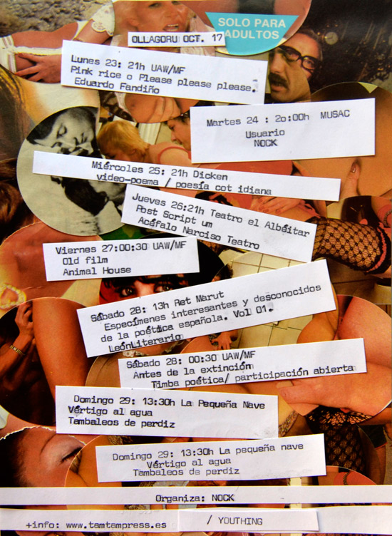Uno de los tres programas de mano del festival de polipoesía OLLAGORU. 23 de octubre de 2017 Return to: Eduardo Fandiño abre el festival de polipoesía OLLAGORU con «Pink rice o please, please, please!»Máxima resolución (550 × 752) Image navigation Previous Image Uno de los tres programas de mano del festival de polipoesía OLLAGORU 2017.