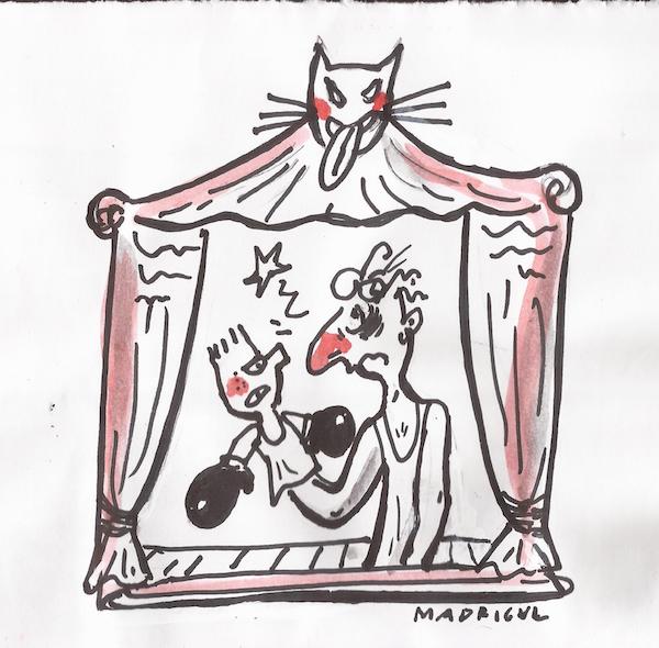 Hay dos respuestas: Michel fue un genio del disimulo y el transformismo, o entre sus colegas había muchos muñecos escondidos dirigiendo el cotarro teatral. Yo, como vengo del humor gráfico y la historieta, me siento muy hermanado con estos adorables perroflautistas y por eso y gracias a mi amigo el viejo gato (que ya murió) estuve siempre al tanto de todo, y como me lo contaron se lo cuento a ustedes.