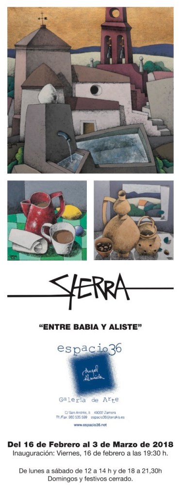 El pintor leonés Manuel Sierra inaugurará el viernes 16 de febrero, a las 19:30 horas, la muestra “Entre Babia y Aliste” en la sala de exposiciones Espacio 36 de Zamora, en la que recoge obras de las comarcas leonesa y zamorana, respectivamente, con paisajes, construcciones o piezas de la vida diaria del medio rural que tienen la particularidad de estar intervenidas por la mano del hombre. Se podrá contemplar hasta el 3 de marzo de 2018.