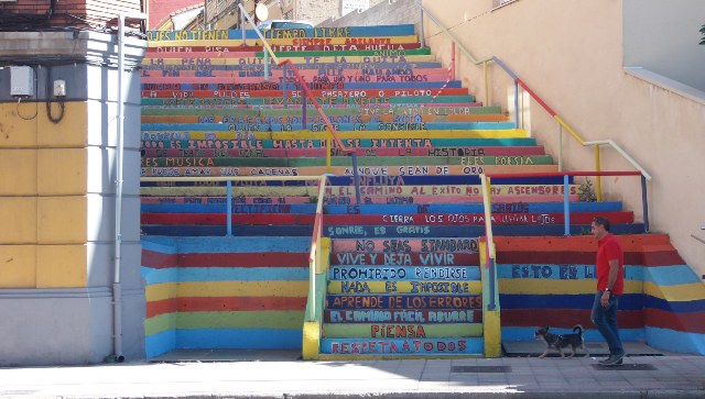 Los docentes crearon con ayuda de sus estudiantes un ARTEespacio con forma de escalera, que han titulado ’La escalera de la vida’. “Lo creamos mediante una intervención artística urbana con el fin de mejorar la ciudad, concretamente la calle en la que está situado el colegio. Ha sido una experiencia en la que los y las estudiantes desarrollan su aprendizaje en la calle, relacionándose con el vecindario. Tienen la satisfacción de ver como su trabajo artístico es capaz de modificar el entorno y poner en valor un lugar de la ciudad”, explica el profesor y artista Carlos Cuenllas.
