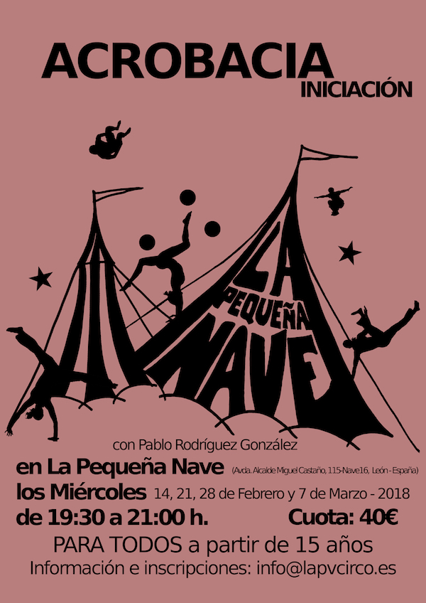 Para empezar, desde León llega la iniciativa de Pablo Rodríguez, que impartirá un taller de cuatro sesiones enfocado específicamente en la Acrobacia, el movimiento, el equilibrio y el desequilibrio, todo ello con el propio cuerpo como protagonista. El taller, planeado para un nivel de iniciación y dirigido a cualquier persona a partir de 15 años de edad, se desarrollará en cuatro miércoles consecutivos, empezando este mismo día 14 de febrero, en horario de 19:30 a 21:00.