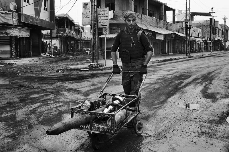 Al final de la calle una furgoneta pick-up avanza a toda velocidad y se detiene enfrente de la escuela. En la parte de atrás viajan hombres armados y cuatro detenidos con los ojos vendados. “¡Son combatientes del Daesh!”, proclama a voz en grito Mazin Nissan, miliciano cristiano. Y continúa: «Los encontramos escondidos en un túnel en Mosul, ellos lo niegan todo, pero puede verse que su corte de pelo es reciente y el de la barba también, lo han hecho para camuflarse entre el resto de la gente”, gesticula visiblemente alterado mientras zarandea las cabezas de los arrestados.