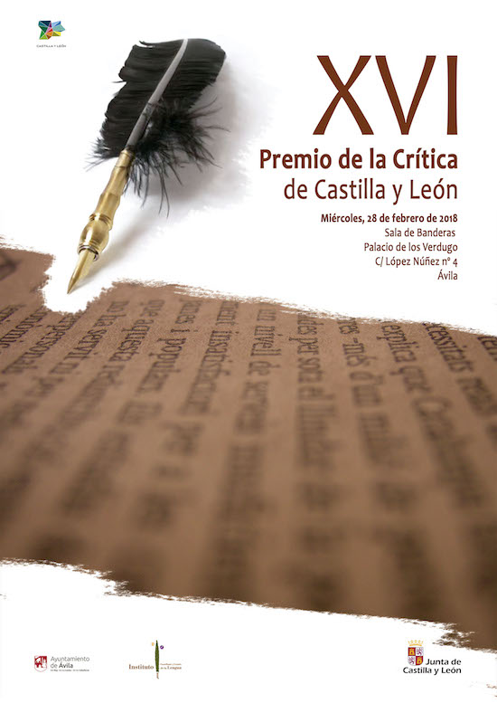 El XVI Premio de la Crítica de Castilla y León (galardón literario creado y otorgado con carácter anual por el Instituto Castellano y Leonés de la Lengua a un libro publicado por un escritor de Castilla y León) se desvelará el próximo miércoles 28 de febrero de 2018 en el Palacio de los Verdugo (Àvila), donde se reunirá el jurado de este premio para deliberar y elegir la obra ganadora.