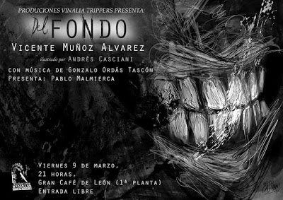 Vicente Muñoz afronta una inmersión muy personal a los infiernos en ‘Del fondo’, un poemario de terror, oscuro y gótico, profusamente ilustrado por el genio argentino Andrés Casciani y editado en su propio sello, Vinalia Trippers. A través de sus páginas, el poeta y editor leonés desciende a un inframundo onírico, muy diferente a su trabajo anterior, en el que afloran sus propias señas de identidad: el cómic, la literatura fantástica y el cine de terror. La presentación del libro, a cargo del autor del epílogo Pablo Malmierca y del músico Gonzalo Ordás, tendrá lugar este viernes 9 de marzo a las 21:00 horas en El Gran Café (León).