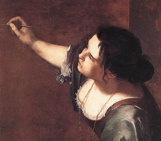 Por otro lado, cuando hallamos alguna mujer en épocas impávidas ante su marginación, suele servir para ejemplificar cuánto hubieron de superar para alcanzar el estatus de artista, por otra parte poco envidiable en el pasado. Son un prototipo, una anomalía. Una de las más representativas, la excelente pintora barroca Artemisia Gentileschi es caso canónico, pues no solamente hubo de abrirse camino precursor en un terreno exclusivamente masculino, llegando a ser primera mujer en algunos círculos profesionales del arte, sino que sufrió una violación a manos de su preceptor artístico de la que se conserva el crudo testimonio de las humillaciones a que fue sometida por el tribunal durante el proceso. Se cree que fue una mujer con gran atractivo, pero en su autorretrato pintando, el moderno observador comprueba su determinación por abrirse paso en un territorio inhóspito, el brío creativo de quien pretende ser un igual a los otros porque, posiblemente, sea mejor. En el cuadro, Artemisia quiere ser tenida por lo que es, artista, no juzgada como una mujer que pinta en un siglo, el XVII, en que casi ninguna podía hacerlo. No quiere ser una rareza, aunque deba encubrirse como una alegoría de la pintura. Su figura, olvidada a su muerte, ha sido recobrada en libros, exposiciones y documentales a menudo centrados en su difícil existencia y en su condición de mujer. Pero sobre todo fue una de las mejores artistas de su generación y está en los museos por derecho propio.
