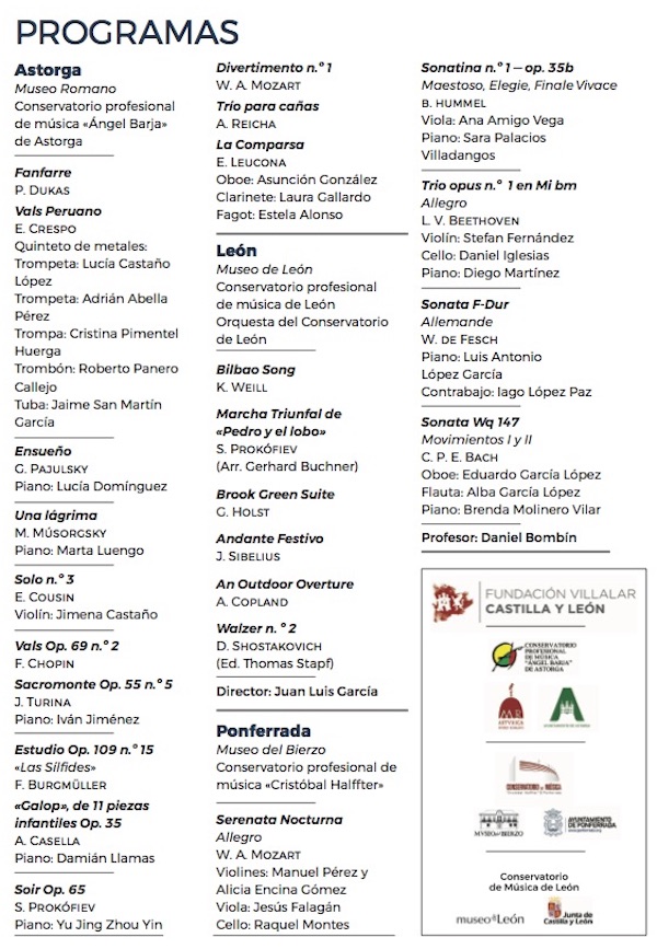 - Colaboran: Museo romano-Ayuntamiento de Astorga, Museo de León-Junta de Castilla y León, Museo del Bierzo-Ayuntamiento de Ponferrada; Conservatorios profesionales de Astorga, León y Ponferrada.