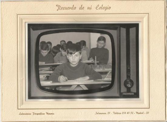 Allí estaban Miguel y Joaquín, que salen retratados conmigo en esa foto que tengo a los nueve años, en blanco y negro, en la clase de doña Donata. El aula era una habitación grande de una casa particular, al final de una avenida; al lado de las vías del tren y de los prados y del campo de fútbol que casi siempre estaba muy embarrado. Ahí estoy en esa foto, enmarcado –fantasía y cortesía de “Laboratorios fotográficos Minerva”– en una pantalla de televisión. Los pupitres parecen muy modestos, tablones montados sobre unos soportes. Sólo yo, que estoy sentado solo, miro a la cámara. Los demás –seguro que siguiendo instrucciones del fotógrafo– en un segundo plano hacen que leen y escriben con mucha aplicación. A mi izquierda, justo detrás de mí, asoma una estufa de carbón. Tengo los ojos almendrados y la boca bonita y una mirada triste. No sé qué estación del año era y si el ángel que me cuida estaba en aquel momento pendiente, o distraído, o sentado y haciendo jeroglíficos en la arena con una vara de avellano.