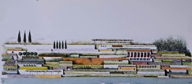 Se trata de una colección de 39 estampas que sigue “un recorrido por diferentes espacios y paisajes ajardinados, ligados a arquitecturas de aire mediterráneo-clasicista, con variadas escalas, situaciones y configuraciones, siempre desde la imaginación y la ensoñación”, según explica el propio autor.