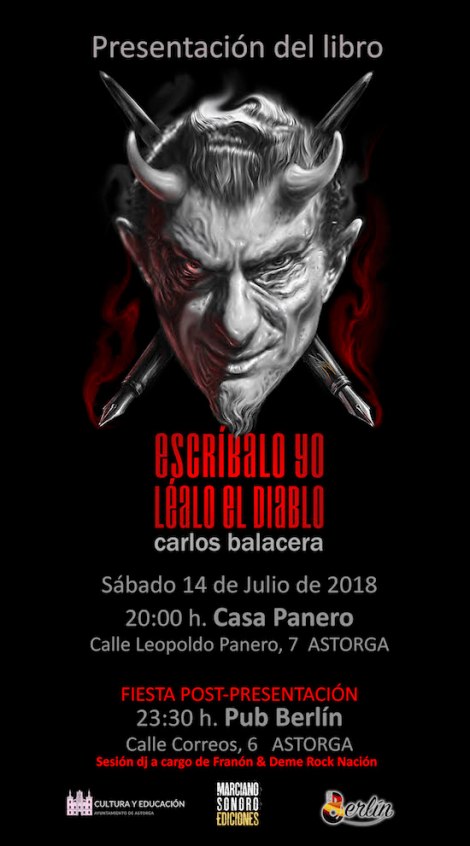 La editorial Marciano Sonoro presenta este sábado 14 de julio la ópera prima del músico astorgano Carlos Balacera, «Escríbalo yo, léalo el diablo». Un libro híbrido con formato de poemario, acompañado de imágenes fotográficas amateur que permiten al autor mostrar su universo más íntimo y cotidiano. La presentación tendrá lugar en la Casa Panero de Astorga a las 20 horas. Y como fiesta post-presentación se ofrecerá una lapidaria sesión de rock and roll a cargo de los dj’s Franón & Deme Rock Nación, a partir de las 23:30 horas en el Pub Berlín.