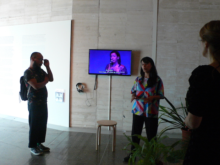 P1100204 14 de septiembre de 2018 Return to: El MUSAC pone una lupa sobre el racismoMáxima resolución (700 × 525) Image navigation Previous Image Siguiente imagen Los comisarios de la exposición y, en el vídeo, la poeta Rafeef Ziadah.