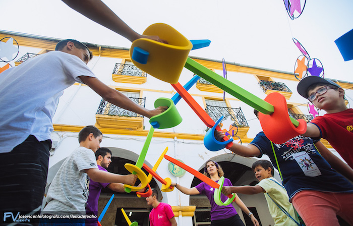 Como resultado en Pie Izquierdo podemos dar cuenta, por ejemplo, del buen funcionamiento de las actividades pedagógicas de DIVIERTEATRO, que coordina en la Plaza del Buen Alcalde Miriam Hernández, y de las que hemos participado con un taller de verso que ha impartido Esther Pérez Arribas. Allí ha coincidido con compañeras de profesión e incluso con antiguas alumnas en un trabajo directo sobre la ciudad, que asume desde la infancia el teatro como herramienta con la que poder trabajar en el futuro. Por allí andaba también el incombustible Dennis Rafter y todos al cuidado de un amplio y eficiente equipo de jóvenes trabajadores, muchos de los cuales han sido en su momento niños participantes de estos talleres y que ahora reciben, además de una compensación económica, formación previa a la feria y durante la misma… primeros auxilios, coordinación de actividades de animación, teatro… y son espectadores de muchos de los espectáculos exhibidos…