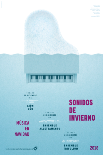 De nuevo regresan los ‘Sonidos de Invierno’ a la Fundación Cerezales Antonino y Cinia (FCAYC), para cerrar con música de cámara la programación anual. El sábado 22 de diciembre arranca su XI edición, con tres formaciones: Aión Dúo (clarinete y piano), Ensemble Allettamento (violín yviolonchelo) y Ensemble Trifolium que exploran la música desde el siglo XVII al XX. Los tres conciertos se repartirán como en años pasados en las iglesias de la comarca; en Lugan, Barrio de Nuestra Señora y Cerezales del Condado.