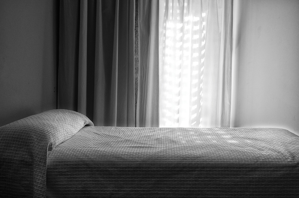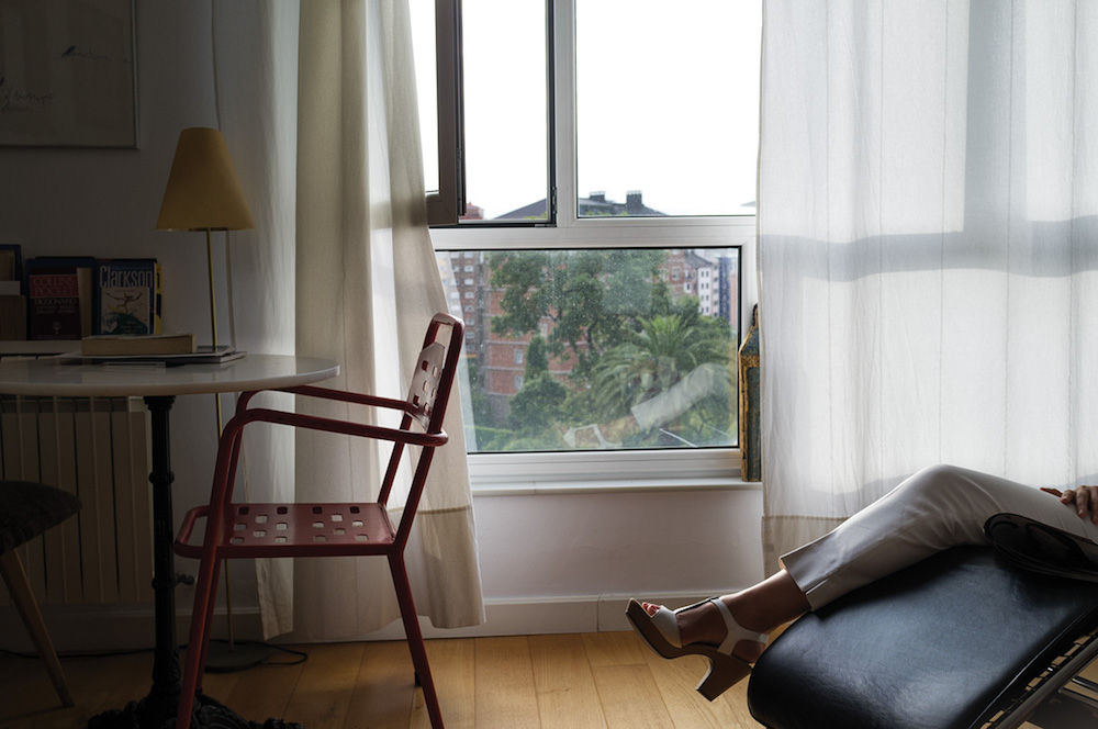 Hay en estas fotografías de interiores una ventana, a veces un reflejo, una cama, una silla. No busques narrativas: traicionarían la imagen. No está sucediendo nada. Ni siquiera hay huecos o ausencias. El aire reposa sobre los objetos indiferentes (radiador, palmera, pierna…), ajeno a los hechos. Si realmente estuvieras ahí (y no en un tren o en mis palabras), no podrías evitar emborronar la tersura de ese aire. Ahí solo puedes dejar de estar, sin dramas ni añoranzas; dejar de ser.