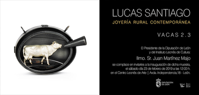 Lucas Santiago inaugura este sábado 23 de febrero, a las 12 horas, en el Centro Leonés de Arte (CLA), la exposición de joyería rural contemporánea “Vacas 2.3″, en la que el joyero y diseñador asturiano muestra sus últimas creaciones: piezas únicas realizadas en su taller a partir de la experimentación artística, con las que rinde homenaje a la vaca mítica. Habrá degustación de productos tinetenses.