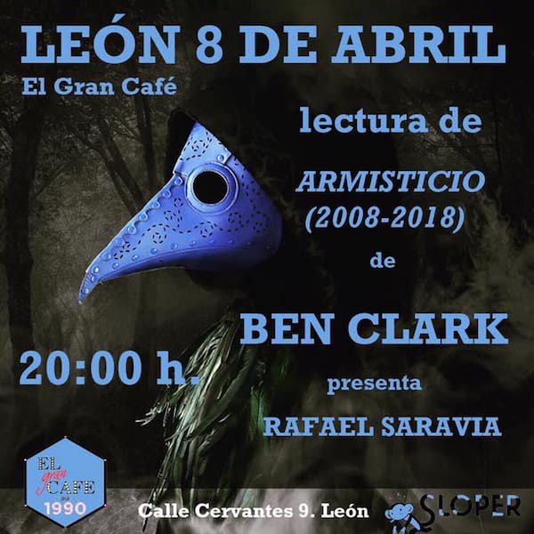 1 cartel clark 8 de abril de 2019 Return to: Ben Clark presenta en León su antología «Armisticio»Máxima resolución (600 × 600) Image navigation Previous Image