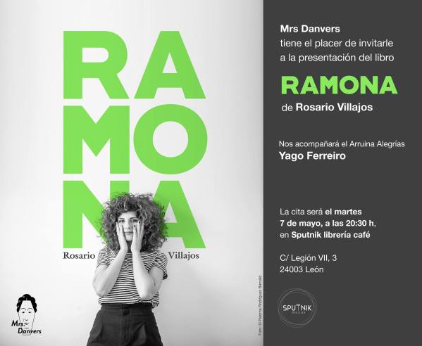 Este martes 7 de mayo, a las 20.30 horas, la librería café Sputnik (León) acogerá la presentación de ‘Ramona’, la primera novela de la escritora y dibujante cordobesa Rosario Villajos, editada por Mrs. Danvers, la nueva colección de narrativa del exquisito sello leonés Mr. Griffin. La autora estará acompañada por el escritor Yago Ferreiro, director y editor de la colección.
